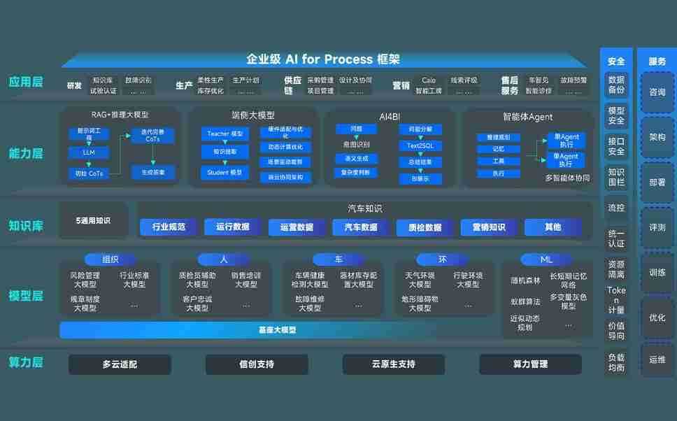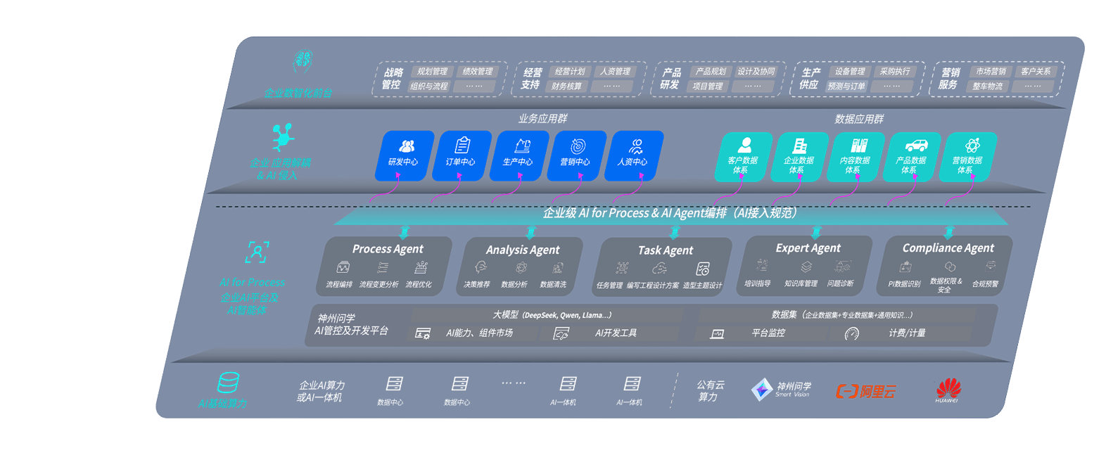 97国际问学智车解决方案是一套基于AI技术的汽车行业智能化系统,,覆盖从底层算力到顶层AI应用的全栈方案。。。。方案由算力层、、、模型层和应用层组成:算力层,,,方案支持多种一体机配置,,,,具备云端灵活部署、、多云适配以及动态优化计算资源的能力;模型层,,,,97国际问学平台版提供了企业级AI应用一站式构建与管理平台,,,支持基于后训练强化技术的汽车企业专属模型的训练、、、、评测和运营;应用层,,,97国际问学DeepSeek版提供包括超级员工、、智能招采、、、智能营销、、智能客服、、、AI for BI等一系列解决方案,,可助力汽车行业实现数字化转型,,让管理更智能、、、、响应更敏捷。。。。